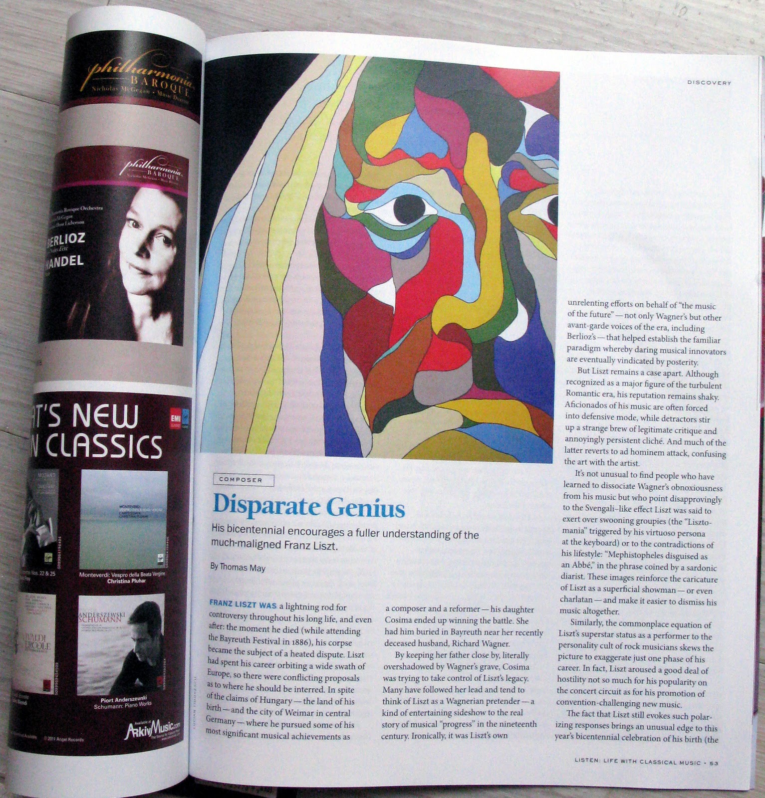 -2011 may- "Liszt's" portrait is in LISTEN-LIFE WITH CLASSICAL MUSIC , one of the most important magazine of classical music in New York.